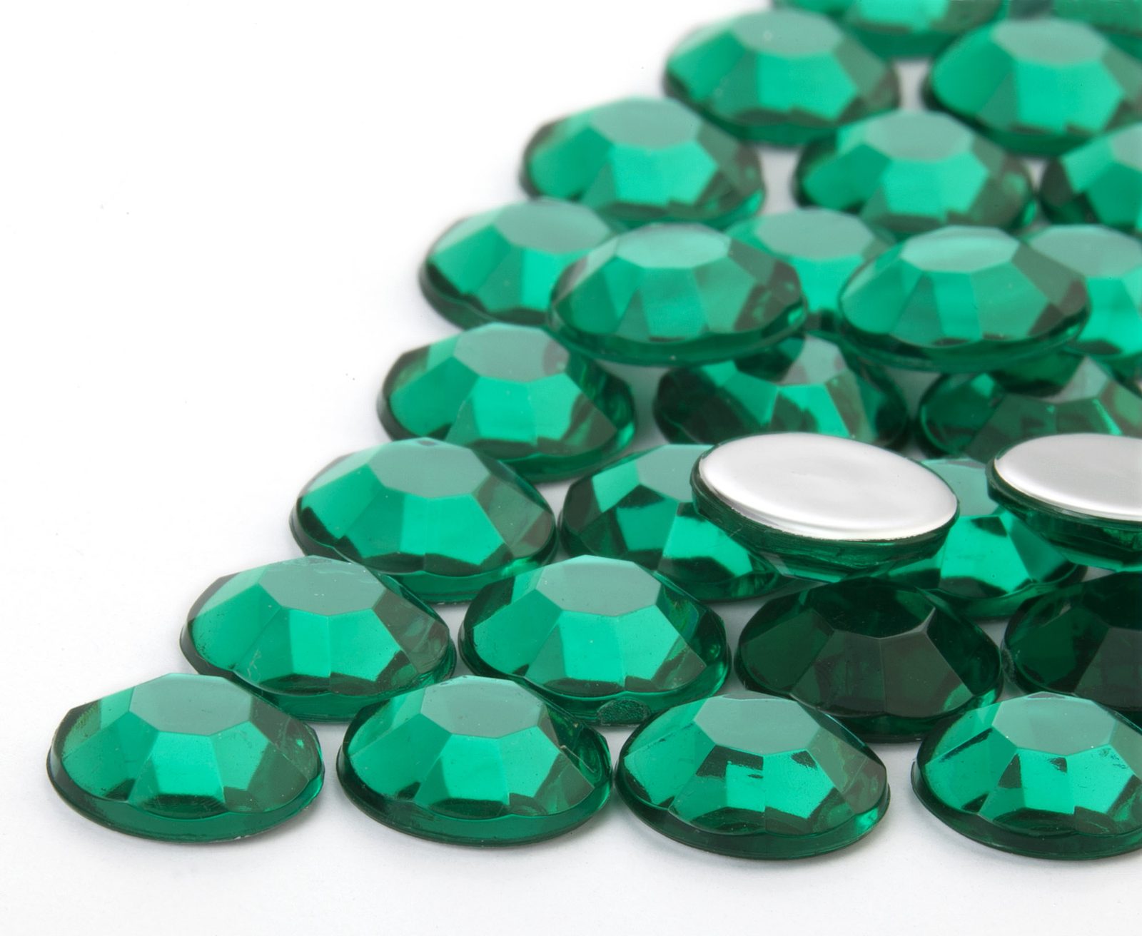 Acrylic glue-on stones round 10mm green are suitable for gluing on, for example, mobile phone cases or for scrapbooking, using two-part epoxy glue.