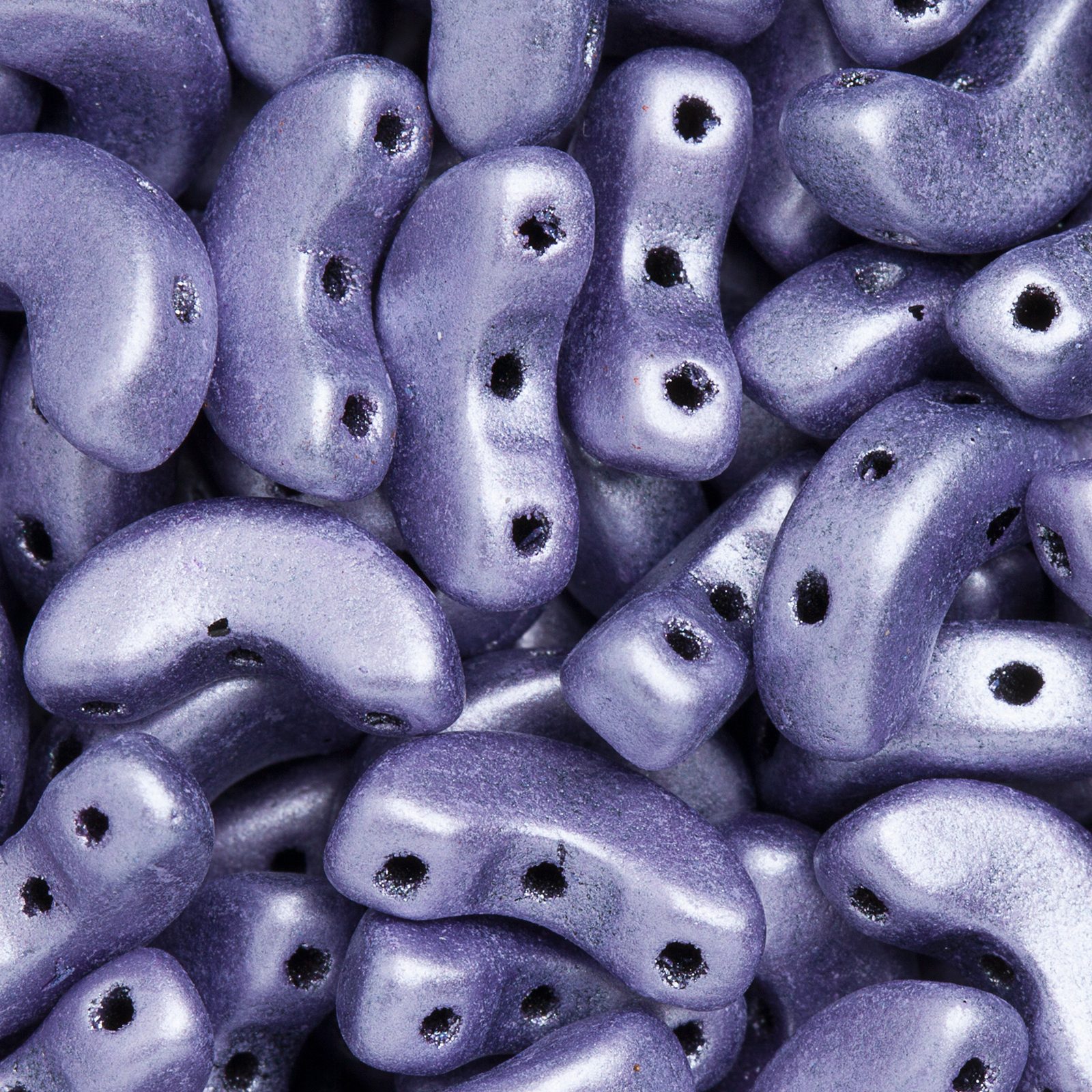 Arcos® par Puca® Metallic Mat Purple No.32 have three holes and a shape of a crescent. Their shape, which was designed by the French designer Puca®, encourages making of curved shapes that will enrich your sewn jewellery.