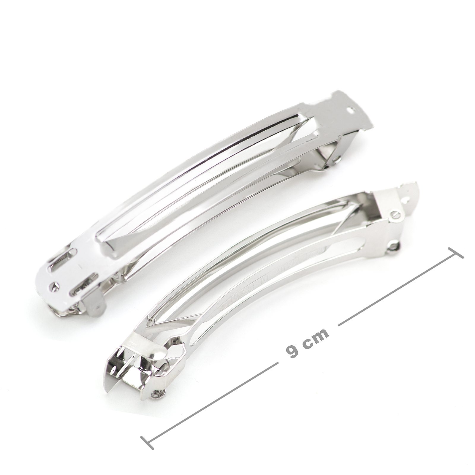 Barrette Hair Clip 9cm is designed for further embellishing, thanks to which you can create a hair barrette tailored to your tastes. High-quality hair barrette with a practical click closing mechanism has a hole on each end for attaching an embellishment. Barrette holds in the hair very tightly.