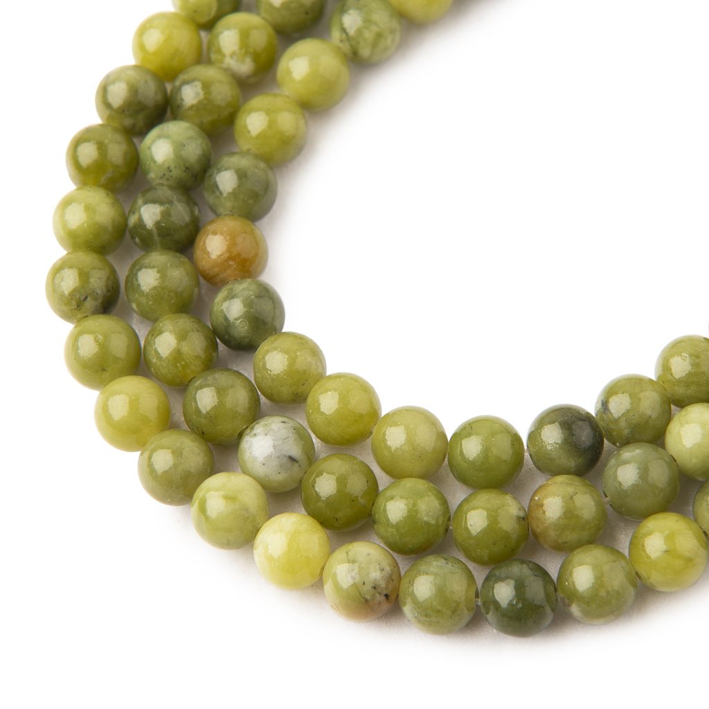 Jadeit kanadský (canadian jade) ve velikosti 6 mm údajně u svého nositele podporuje štěstí a přináší mu hojnost. Má obvykle jasně zelenou až zelenožlutou barvu. Může být ale také tmavě zelená. Bývá spojován s pozitivní energií a duchovním růstem. Též prý symbolizuje harmonii a rovnováhu, do níž se nositel může dostat spojením se zemí. V legendách je považován za kámen lásky a rodinného štěstí. V některých kulturách se věří, že přináší harmonii do partnerských vztahů. Každý korálek je originál, a proto se může lišit o cca 0,5 mm. Více o jadeitu kanadském si přečtěte v našem článku o jadeitu.