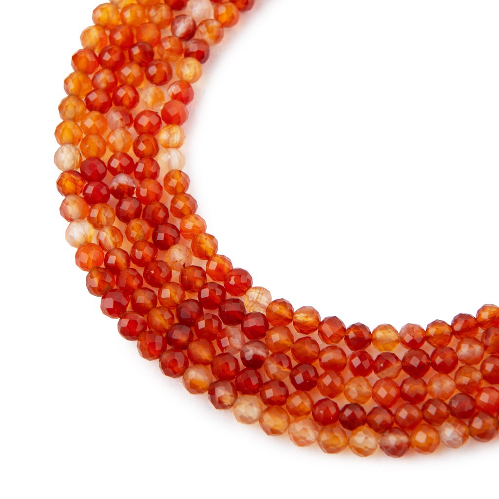 Jemně broušený karneol ve velikosti 4 mm údajně svému nositeli napomáhá k radosti a přinesení optimismu do života. Má intenzivní a sytou oranžovou barvu s různými odstíny, od světlejších po tmavší. Také prý pomáhá s kreativitou a sebevyjádřením. Říká se, že upevňuje vztahy, posiluje sebedůvěru, otevřenost a upřímnou komunikaci. Podle legend odstraňuje emoční bloky a umožňuje dát průchod všem pocitům a skutečnému Já. Bývá také často spojován s uvolněním a podporou sebevědomí. Více o oranžovém karneolu si přečtěte v našem článku o karneolu.
