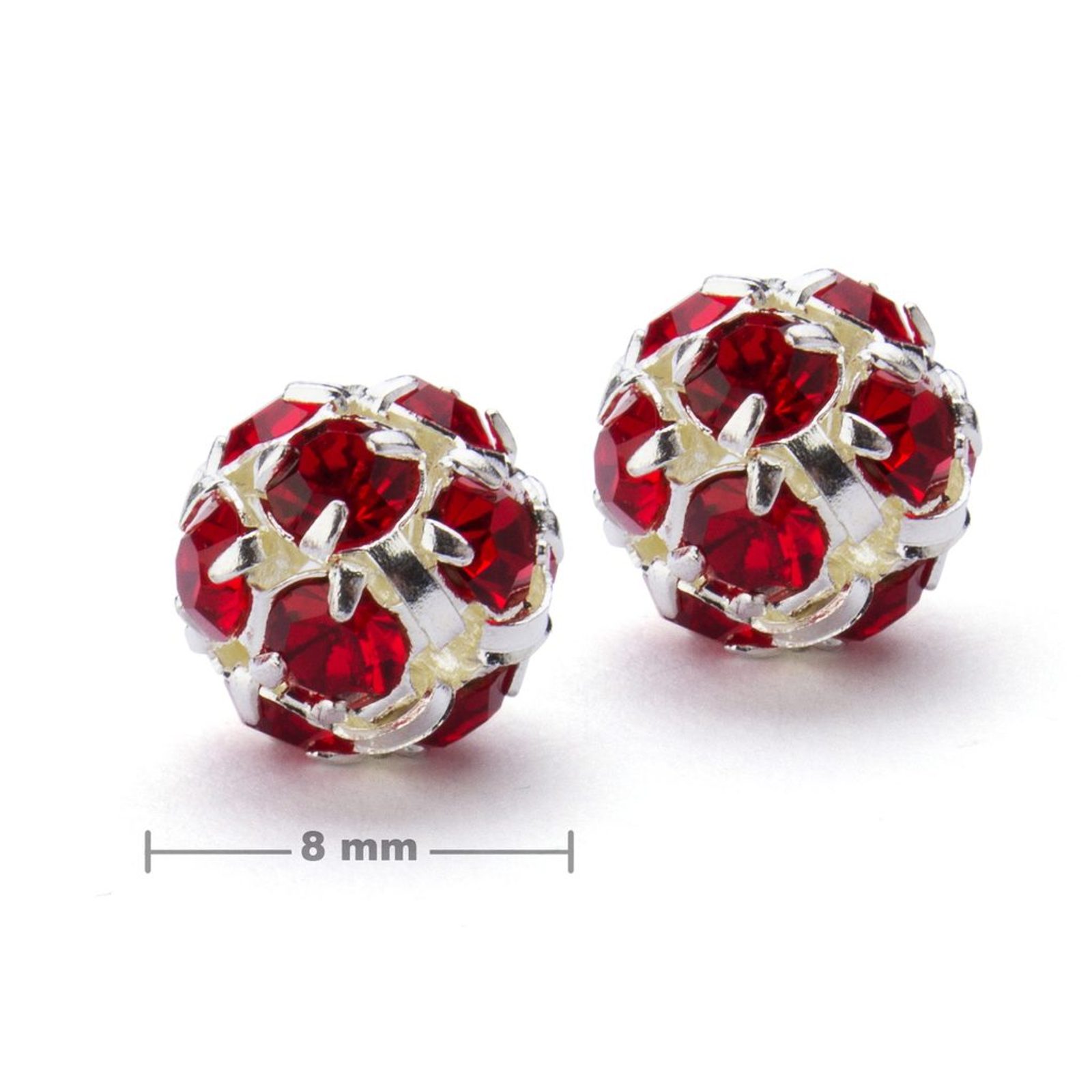 Rhinestone ball 8mm silver Light Siam is made up of 12 pieces of chatons, glass imitations of diamonds, that are fastened in a molding. This chaton ball is a prominent element thanks to its high shine from all sides.