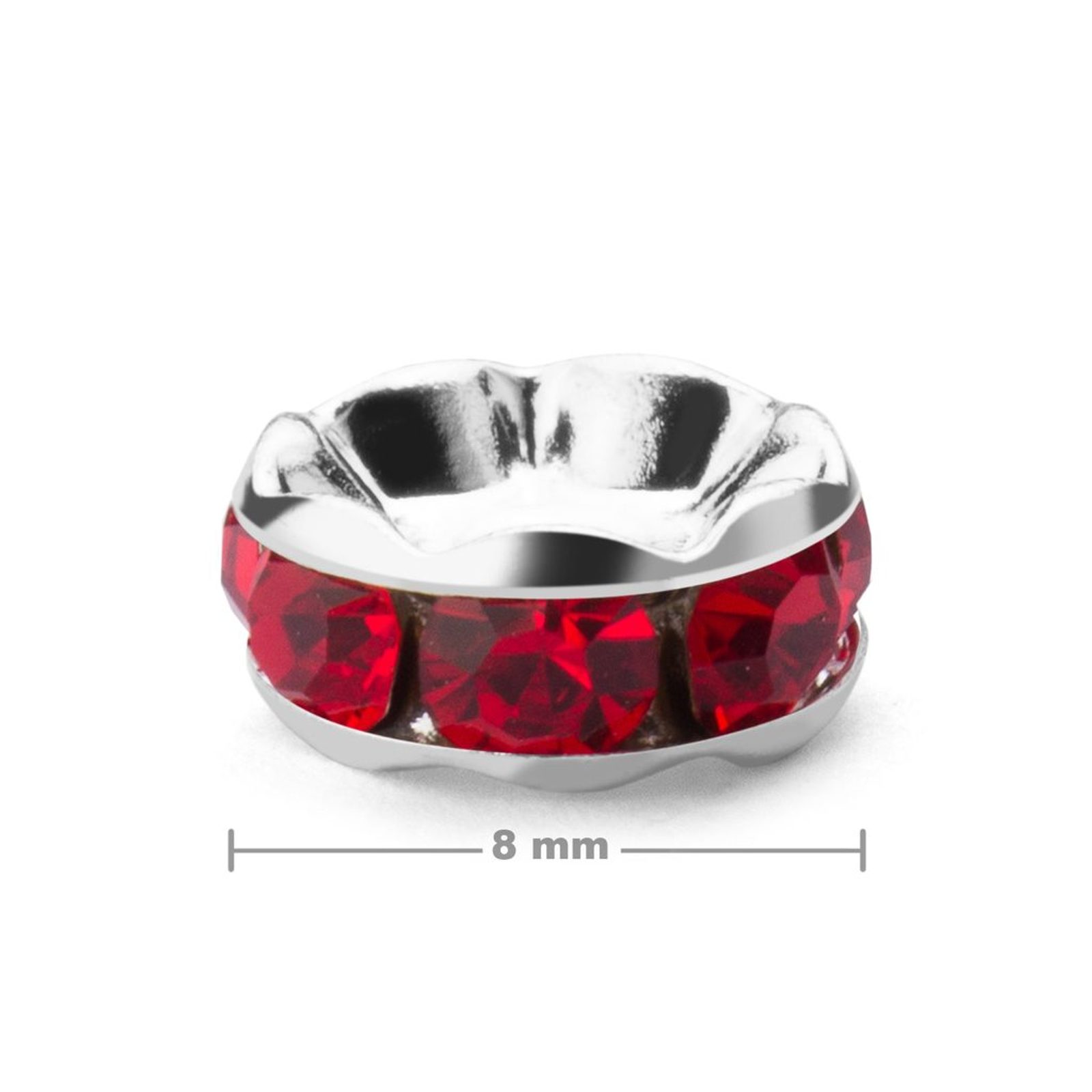 Rhinestone rondelle 8mm silver Light Siam is made up of chatons fastened in settings. You can use this rhinestone rondelle as a spacer between strung beads or even as an independent decorative element.