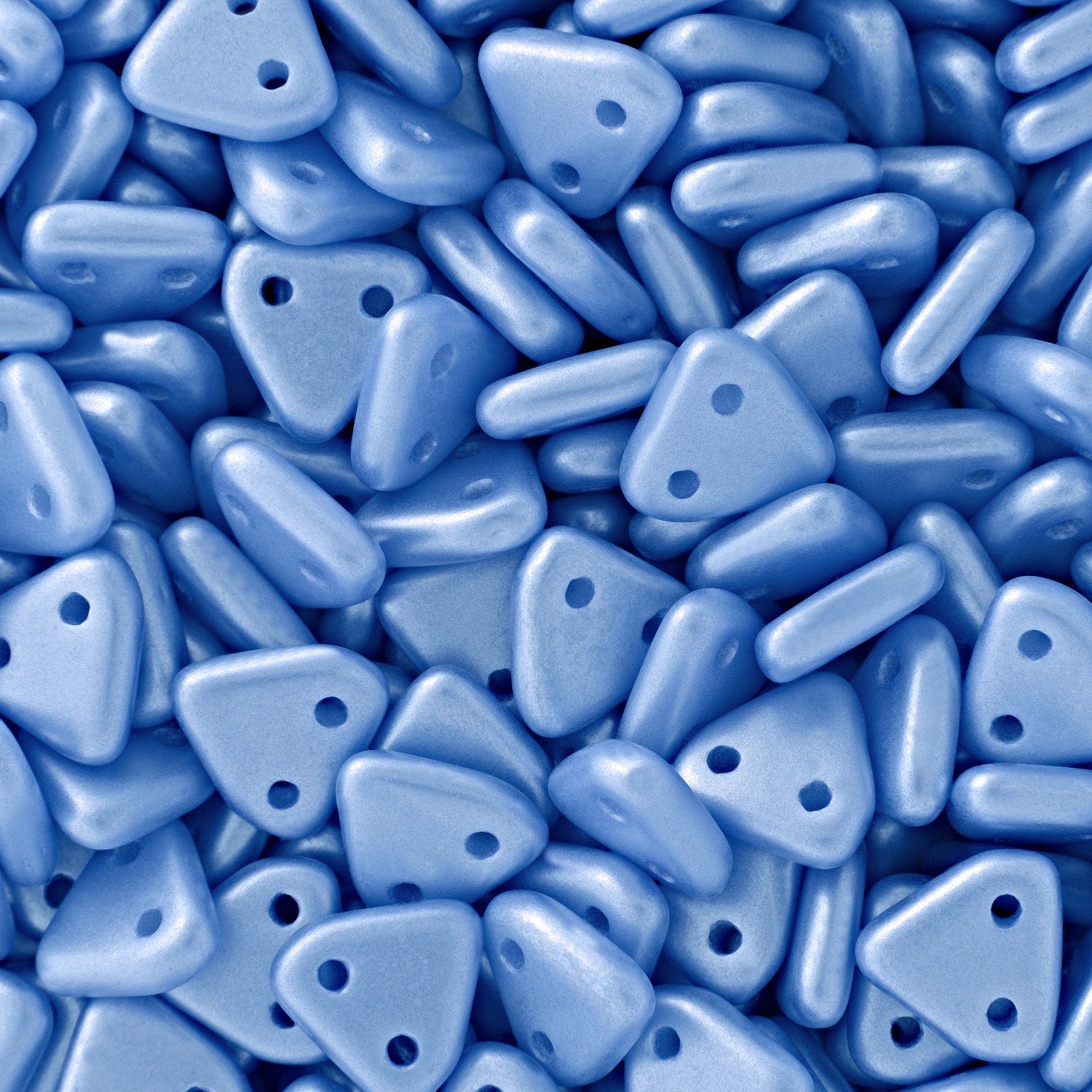 CzechMates Triangle 6mm Sapphire No.150 are Czech two-hole beads of triangular shape. They have rounded edges and two holes that you can thread multiple times thanks to the hole width of 0.9 mm.