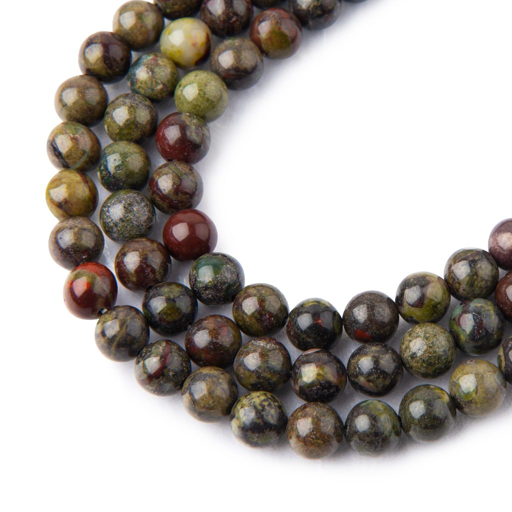 Jaspis dračí krev (dragon blood jasper) ve velikosti 6 mm údajně pomáhá svého nositele propojit s přírodou a udržet si pozemskou rovnováhu. Má tmavě červenou až hnědou barvu, často velmi intenzivní. Tento kámen prý chrání svého nositele před negativními vlivy. Bývá vyhledáván, jelikož se říká, že posiluje odvahu a sebevědomí. Podle legend napomáhá vyrovnat se s výzvami a konflikty. Je spojován se silou a vitalitou. Každý korálek je originál, a proto se může lišit o cca 0,5 mm. Více o jaspisu dračí krev si přečtěte v našem článku o jaspisu.