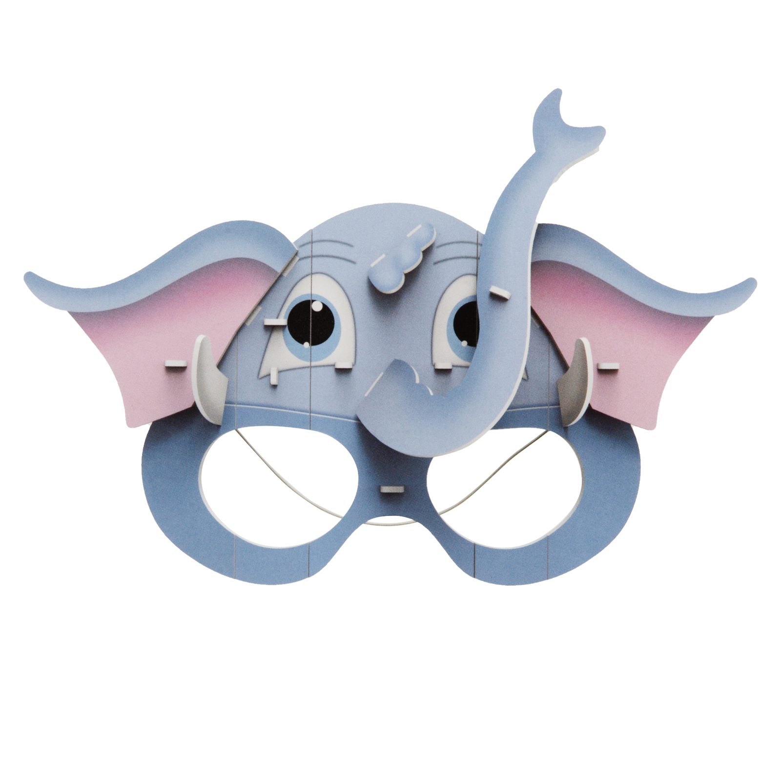 Create an original 3D mask for carnivals or fancy-dress balls and become a little elephant! This mask consists of the main part onto which you attach the ears, trunk and tusks. The kit contains a foam rubber mask and an elastic band for fastening.