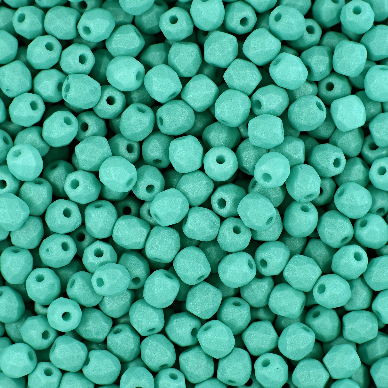 Glass fire polished beads 3mm Mint belong to the permanent manufacturing program of fire polished beads. Thanks to the permanent availability of their colour range, these beads are suitable mainly for larger projects, bead weaving, bezeling as well as looping.
