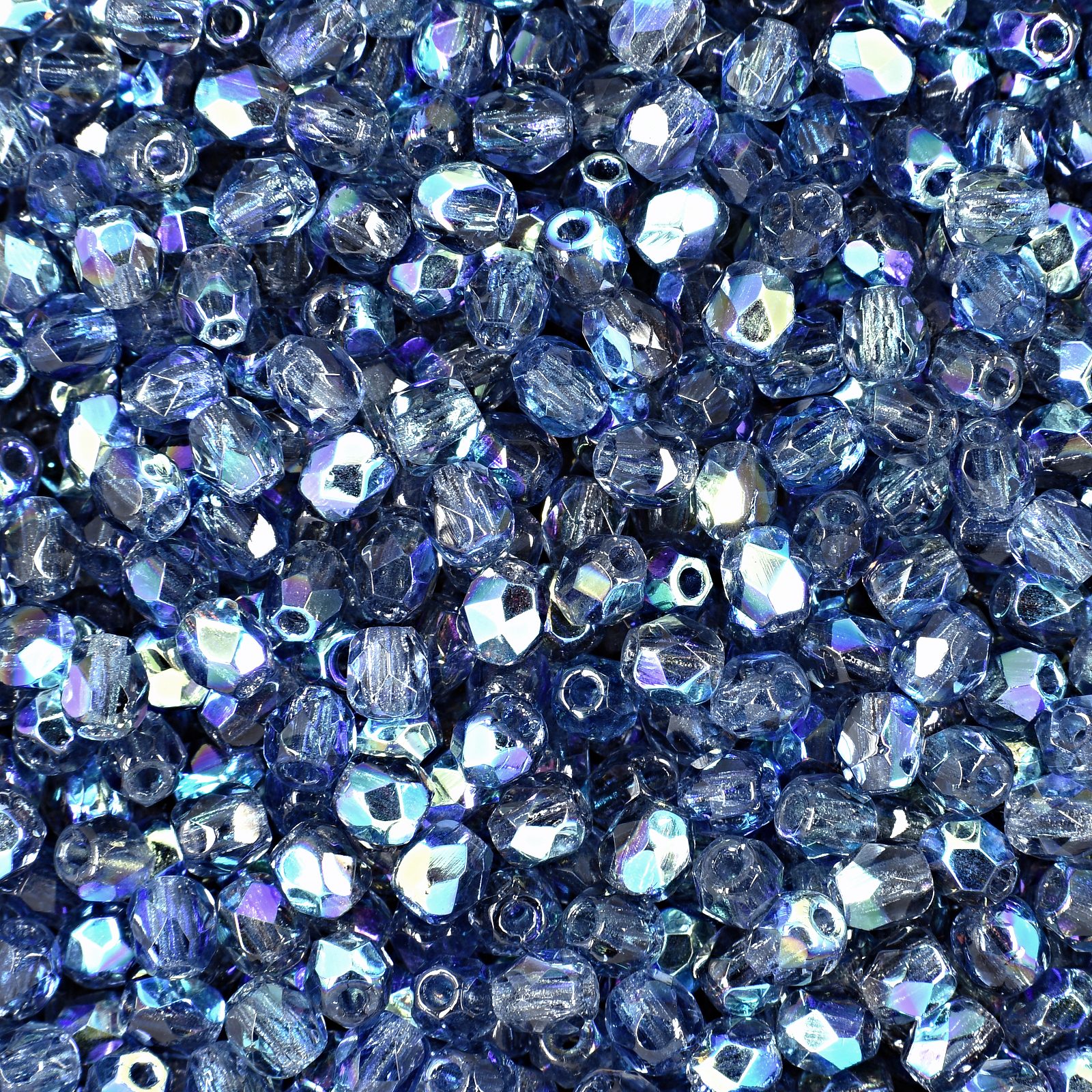 Glass fire polished beads 3mm Montana Blue AB belong to the permanent manufacturing program of fire polished beads. Thanks to the permanent availability of their colour range, these beads are suitable mainly for larger projects, bead weaving, bezeling as well as looping.
