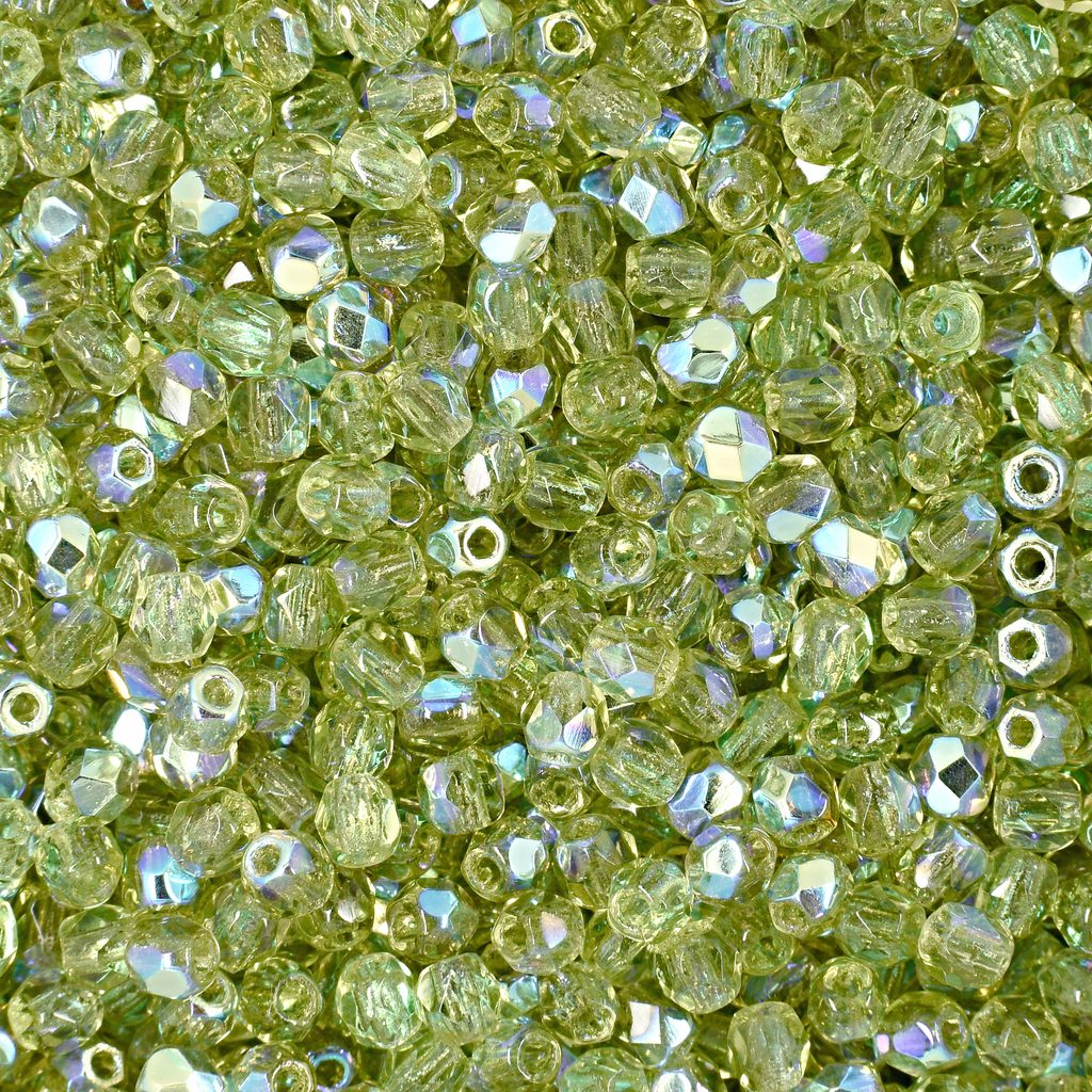 Glass fire polished beads 3mm Olivine AB belong to the permanent manufacturing program of fire polished beads. Thanks to the permanent availability of their colour range, these beads are suitable mainly for larger projects, bead weaving, bezeling as well as looping.