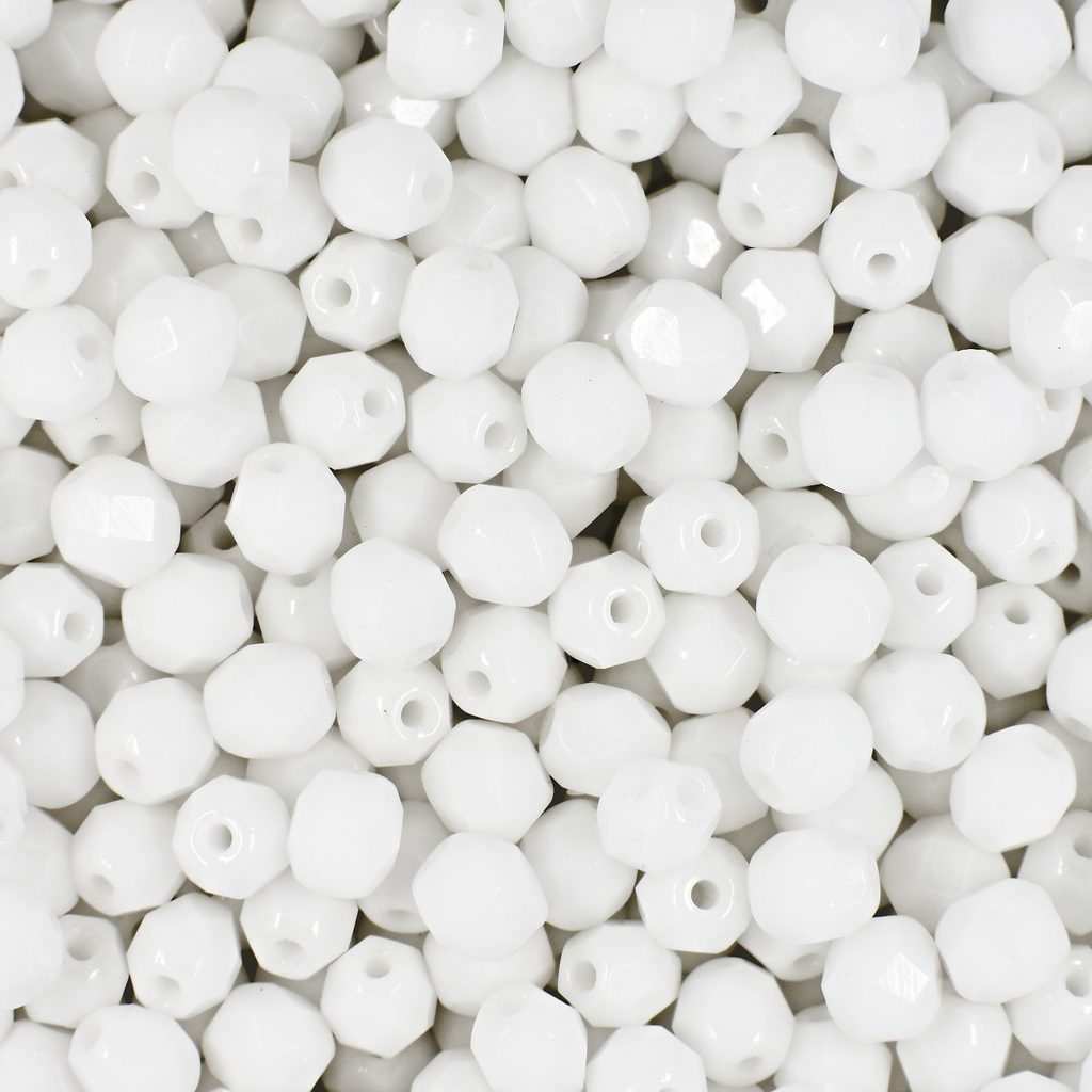 Glass fire polished beads 4mm Alabaster belong to the permanent manufacturing program of fire polished beads. Thanks to the permanent availability of their colour range, these beads are suitable mainly for larger projects, bead weaving, bezeling as well as looping.