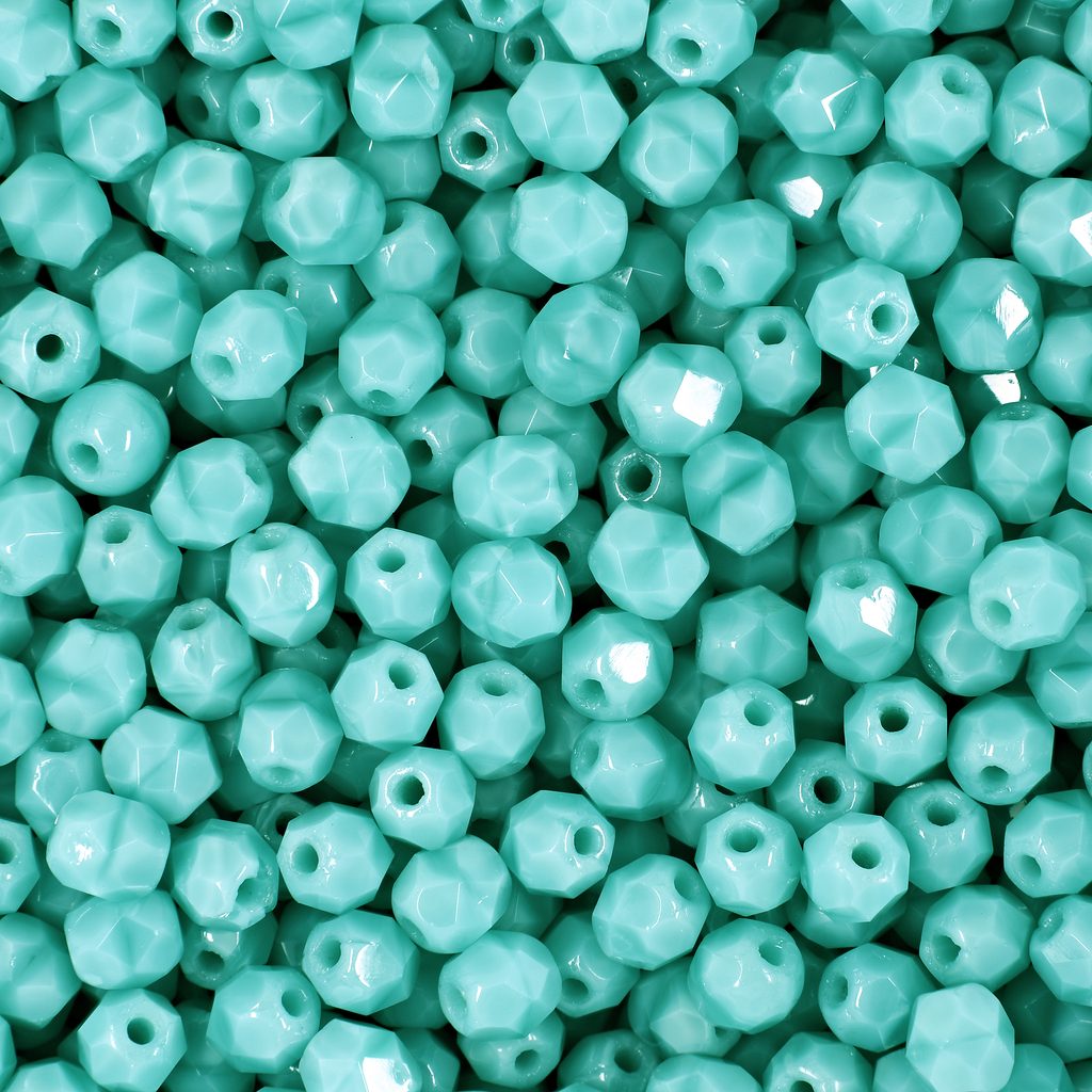 Glass fire polished beads 4mm Opaque Azure Turquoise belong to the permanent manufacturing program of fire polished beads. Thanks to the permanent availability of their colour range, these beads are suitable mainly for larger projects, bead weaving, bezeling as well as looping.