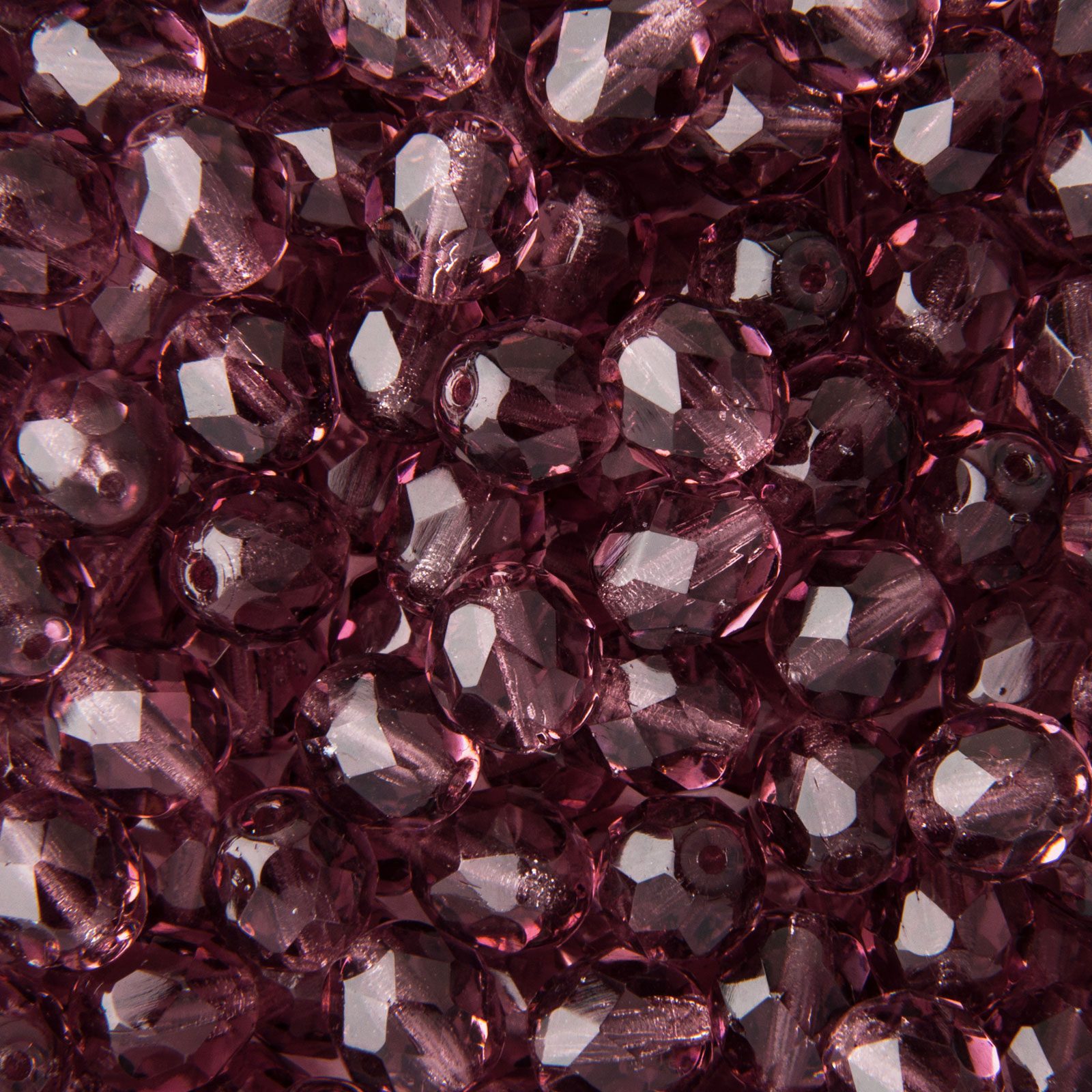Glass fire polished beads 8mm Amethyst belong to the permanent manufacturing program of fire polished beads. Thanks to the permanent availability of their colour range, these beads are suitable mainly for larger projects, bead weaving, bezeling as well as looping.