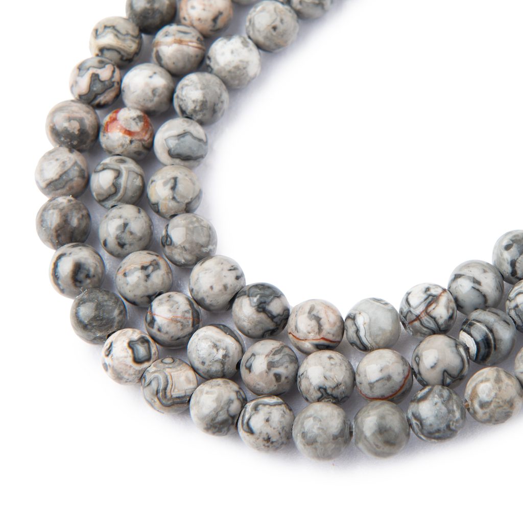 Jaspis Picasso šedý (gray Picasso / map stone) ve velikosti 6 mm údajně přináší klid a vyrovnanost do života svého nositele. Má šedou barvu s různými odstíny až nádechem stříbrné barvy. Tento kámen prý podporuje kreativitu, umělecký přístup a inspiraci. Říká se, že povzbuzuje tvůrčí myšlení. Podle legend pomáhá překonávat únavu a zvyšuje fyzickou odolnost. Údajně umožňuje navázat hlubší spojení se zemí a přírodními silami. Pomáhá prý také překonávat obavy a posilovat sebedůvěru. Každý korálek je originál, a proto se může lišit o cca 0,5 mm. Více o jaspisu Picasso šedém si přečtěte v našem článku o jaspisu.
