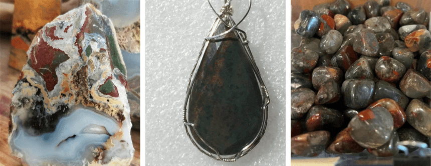 Poznejte africký krvavý kámen heliotrop zblízka v naší encyklopedii, kterou si zobrazíte níže kliknutím na Zobrazit více. ↓