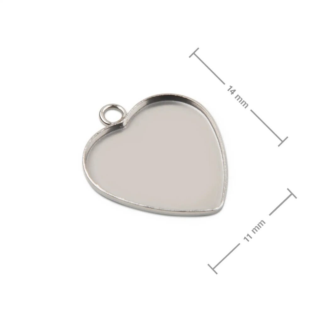 The 10 x 10 mm surgical steel pendant with a heart-shaped bed is an ideal component to create with crystal resin. The pendant can easily be made into a beautiful locket with a photo or a watered flower. However, you can also use it to make other trendy jewellery, for example from polymer materials. You can complement the pendant with a suitable surgical steel chain to create a simple accessory. The surgical steel components are hypoallergenic and long-lasting. The dimensions of the entire component including the eyelet are 11 x 14 mm.