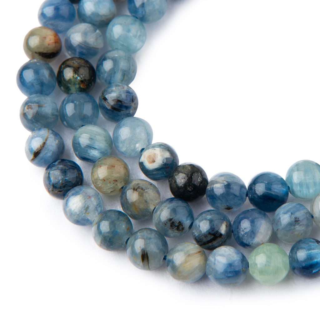 Kyanit (kyanite) ve velikosti 8 mm údajně pomáhá svému nositeli harmonizovat a uklidňovat emocionální nerovnováhu a stres. Je proto skvělou volbou pro ty, kteří se cítí neklidní či pod tlakem. Má modrou barvu světlých až intenzivních odstínů. Může se ale vyskytovat také v bílé, šedé, zelené, nebo dokonce může být bezbarvý. Říká se, že u svého nositele často posiluje intuici a vnímavost. Lidé jej dále vyhledávají, neboť je spojován s duchovním růstem. Traduje se, že pomáhá otevírat vnitřní vědění a rozvíjet duchovní dovednosti. Každý korálek je originál, a proto se může lišit o cca 0,5 mm. Více o kyanitu si přečtěte v našem článku o kyanitu.