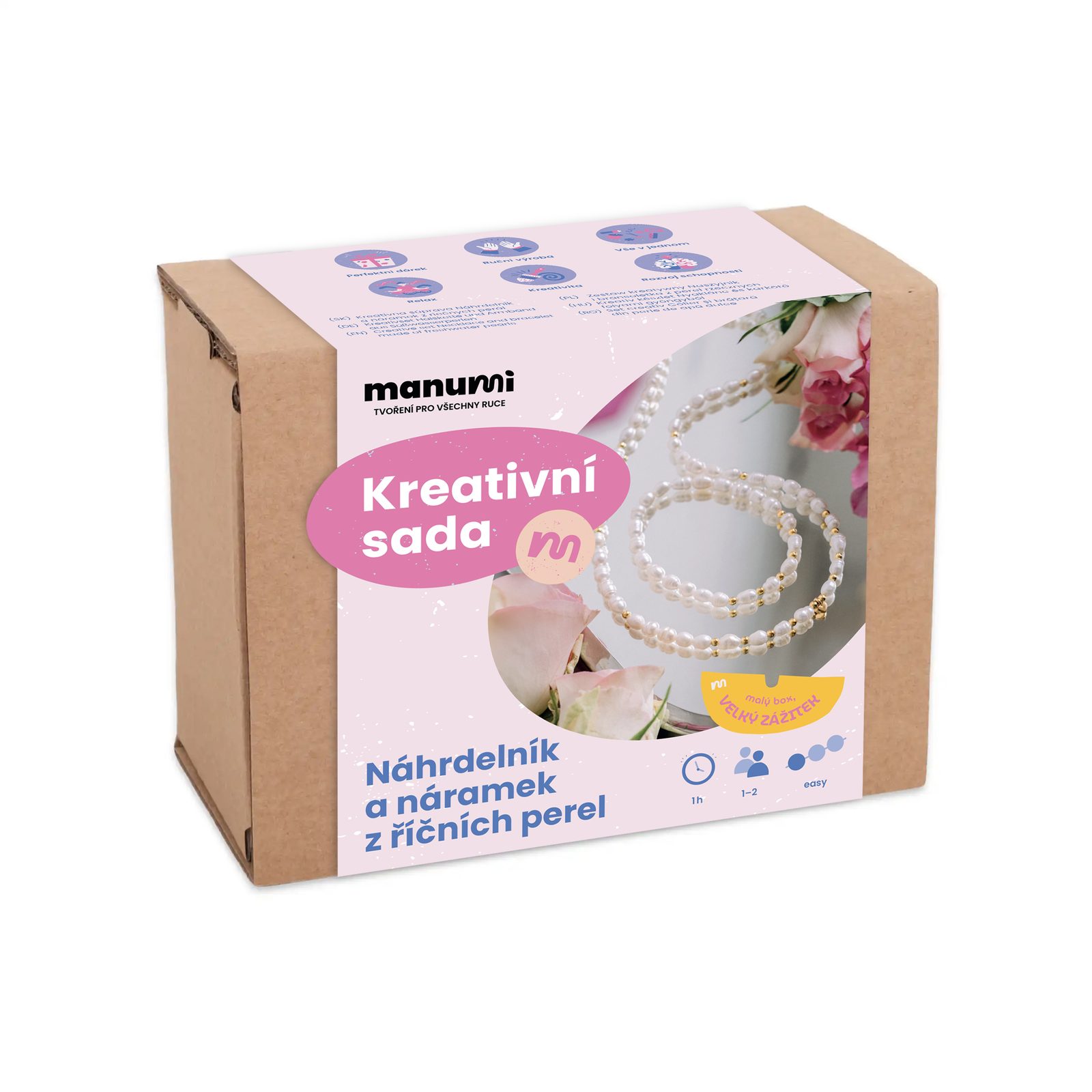 Manumi creative kit for making a set of bracelets and necklaces from river pearls is an ideal basis for making luxury jewelry that goes with every outfit. Pearls have been returning to the forefront of fashion trends in recent years. They are suitable not only for festive occasions, but also for everyday wear. Real pearls will therefore perfectly complement any minimalist or more complex look. The delicate shine of river pearls looks elegant, natural and unobtrusive, whether they adorn the neckline or wrist.