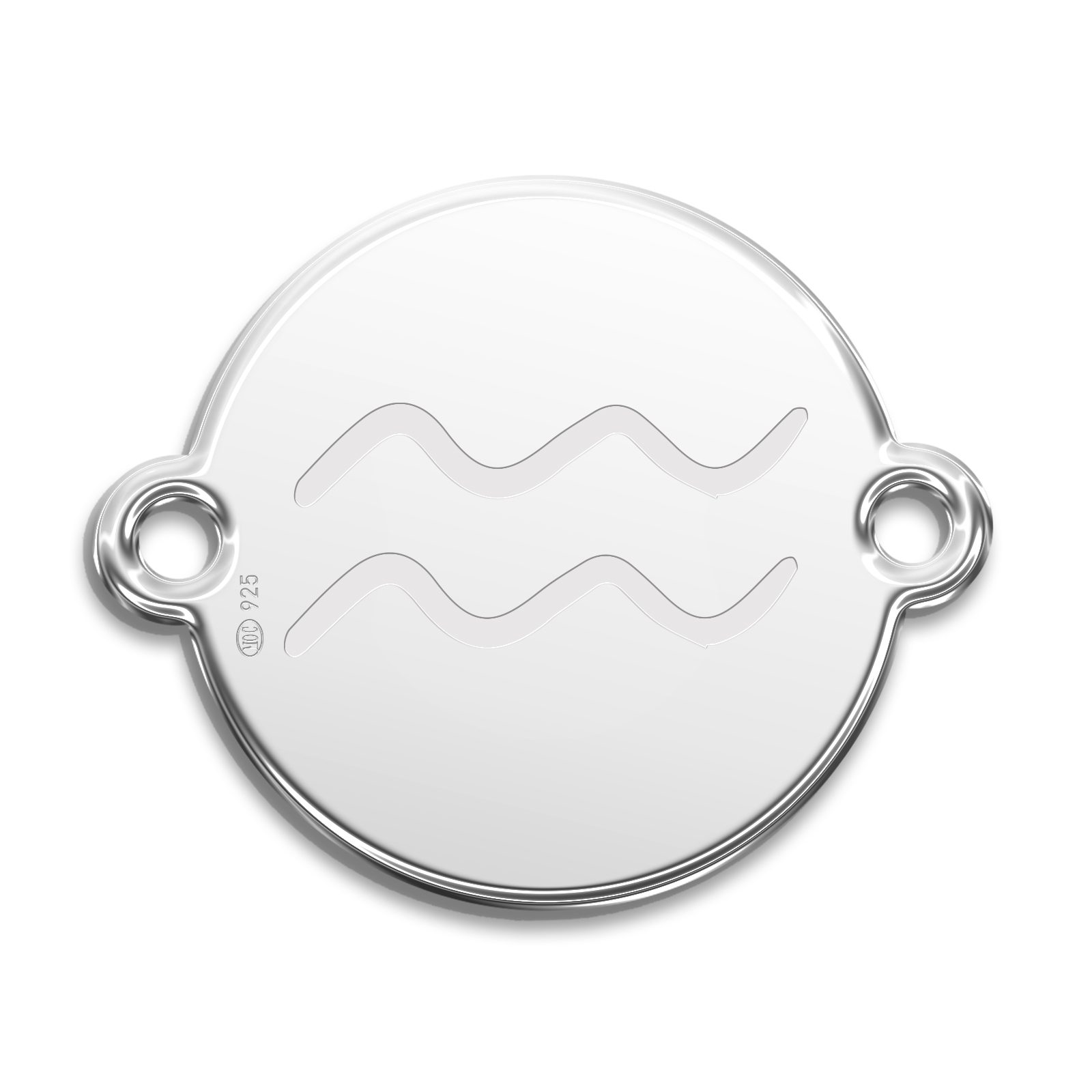 Silver round connector 12 mm with an engraved Zodiac sign Aquarius design is a decorative finding for, for example, trendy Shamballa cord bracelets. A connector is usually the central motif of simple jewellery pieces. This piece with an original Manumi design is made of high-quality silver, which ensures its longevity and colour fastness.