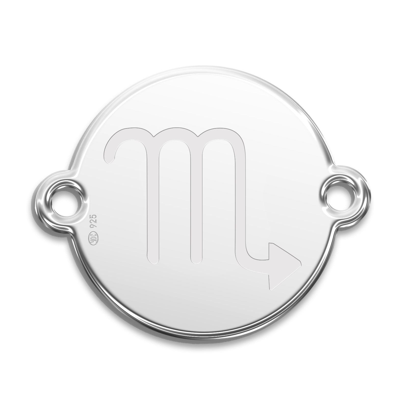 Silver round connector 12 mm with an engraved Zodiac sign Scorpio design is a decorative finding for, for example, trendy Shamballa cord bracelets. A connector is usually the central motif of simple jewellery pieces. This piece with an original Manumi design is made of high-quality silver, which ensures its longevity and colour fastness.