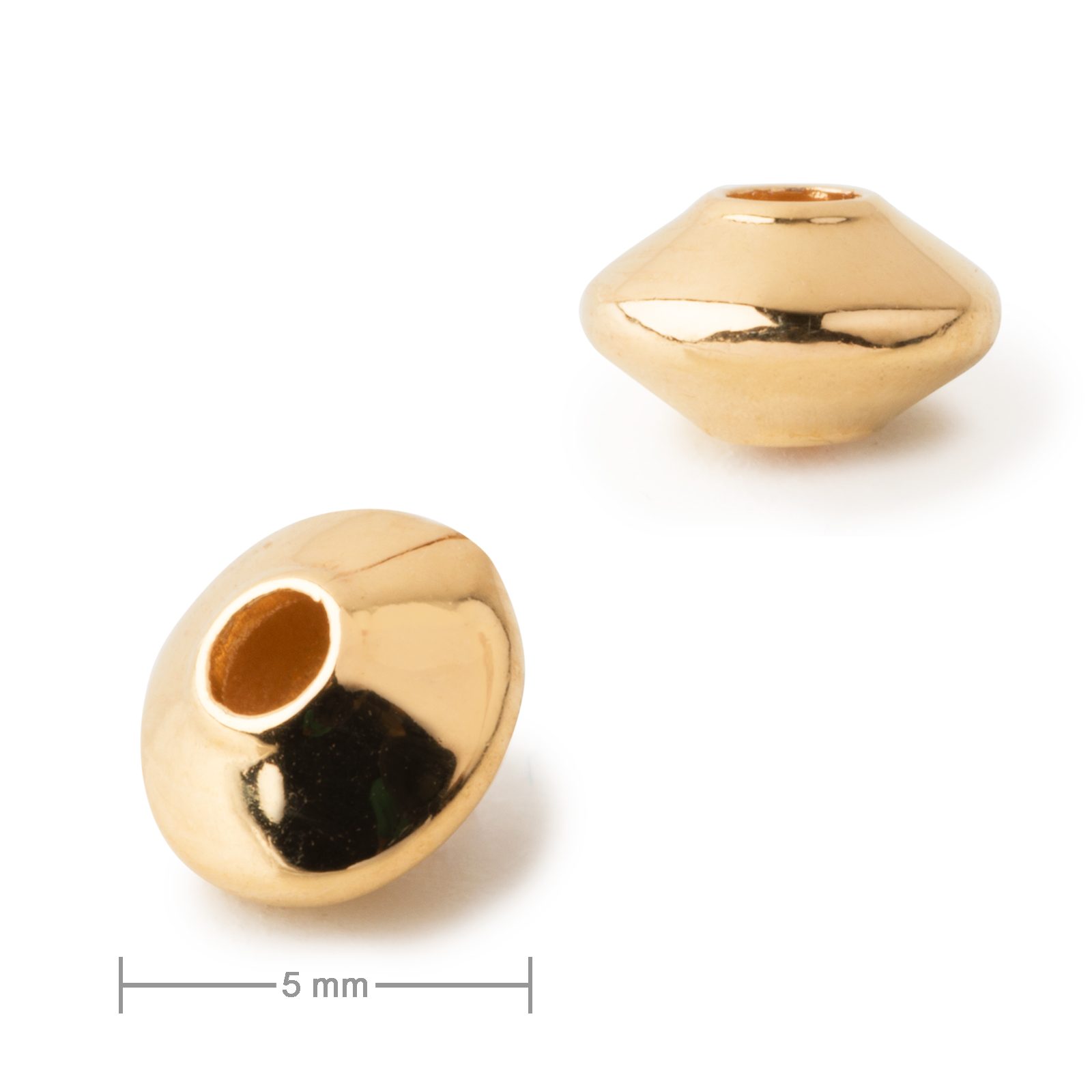 Metal bead ufo 5 mm gold can be used as a spacer in your bead strings or looped strings. Thanks to the metal-plated design, they can elegantly decorate your mineral bracelet as well as layered jewellery.