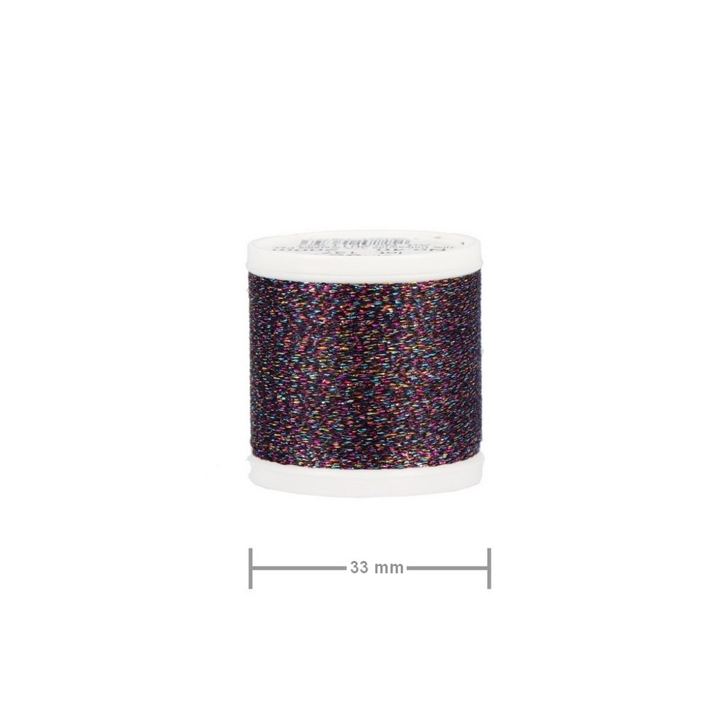 Metallic embroidery thread, sometimes called embroidery yarn, by Rico Design hase a glittery black colour with rainbow reflections. It’s approx. 200 m long, it’s made of 70% polyester and 30% metallic fiber and can be washed at temperatures up to 60 °C. This thread can be used for highlighting details or embroidering whole designs to which you want to add original shiny metallic tones.