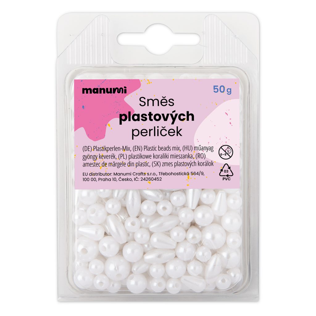 Metallic plastic beads white are very light and therefore suitable for creating 3D stars, Christmas ornaments and decorations. Pack contains beads in the shape of balls, drops and olives in various sizes.