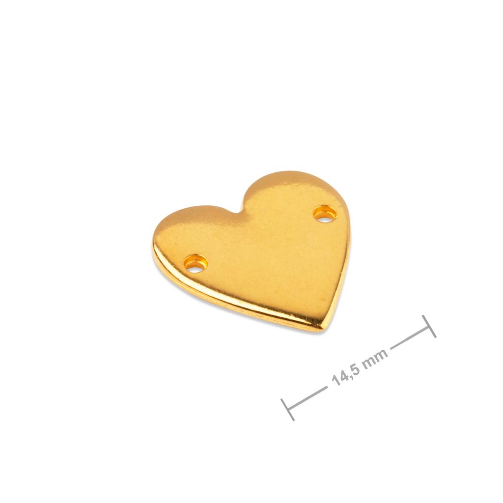Manumi connector heart 15x14.5mm gold-plated made from a special hypoallergenic metal called zamak is an ideal finding for making layered accessories, Boho jewellery and bracelets with minerals. Thanks to a surface finish with precious metals, you can combine this finding, for example, with silver or gold-plated chains. It will also stand out on other threading materials, such as leather cords or Shamballa cords.