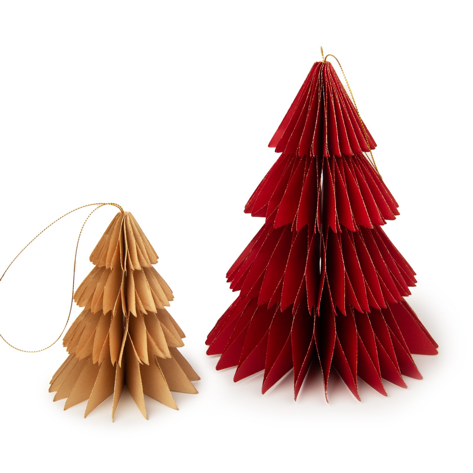 This set of two paper decorations in the shape of a Christmas tree in red and yellow colour will stand out on a Christmas tree, in the middle of a festive table or anywhere else inside. Size of the trees is 17 x 20 cm and 11 x 13 cm, and in the set you’ll also find two gold strings to attach the trees if you decide to hang them somewhere. Putting this impressive 3D Christmas decoration together is very simple. Create a fairytale Christmas environment full of joy, happiness and crafting at home."}" data-sheets-userformat="{"2":771,"3":{"1":0},"4":{"1":2,"2":14281427},"11":4,"12":0}">This set of two paper decorations in the shape of a Christmas tree in red and yellow colour will stand out on a Christmas tree, in the middle of a festive table or anywhere else inside. Size of the trees is 17 x 20 cm and 11 x 13 cm, and in the set you’ll also find two gold strings to attach the trees if you decide to hang them somewhere. Putting this impressive 3D Christmas decoration together is very simple. Create a fairytale Christmas environment full of joy, happiness and crafting at home."}" data-sheets-userformat="{"2":771,"3":{"1":0},"4":{"1":2,"2":14281427},"11":4,"12":0}">Putting this impressive 3D Christmas decoration together is very simple and there’s no need for glue.On the edges of each ornament, there are magnets that will hold together. It’s also possible to simply and without damage unfold the ornaments and hide them to be used next year. Create a fairytale Christmas environment full of joy, happiness and crafting at home.