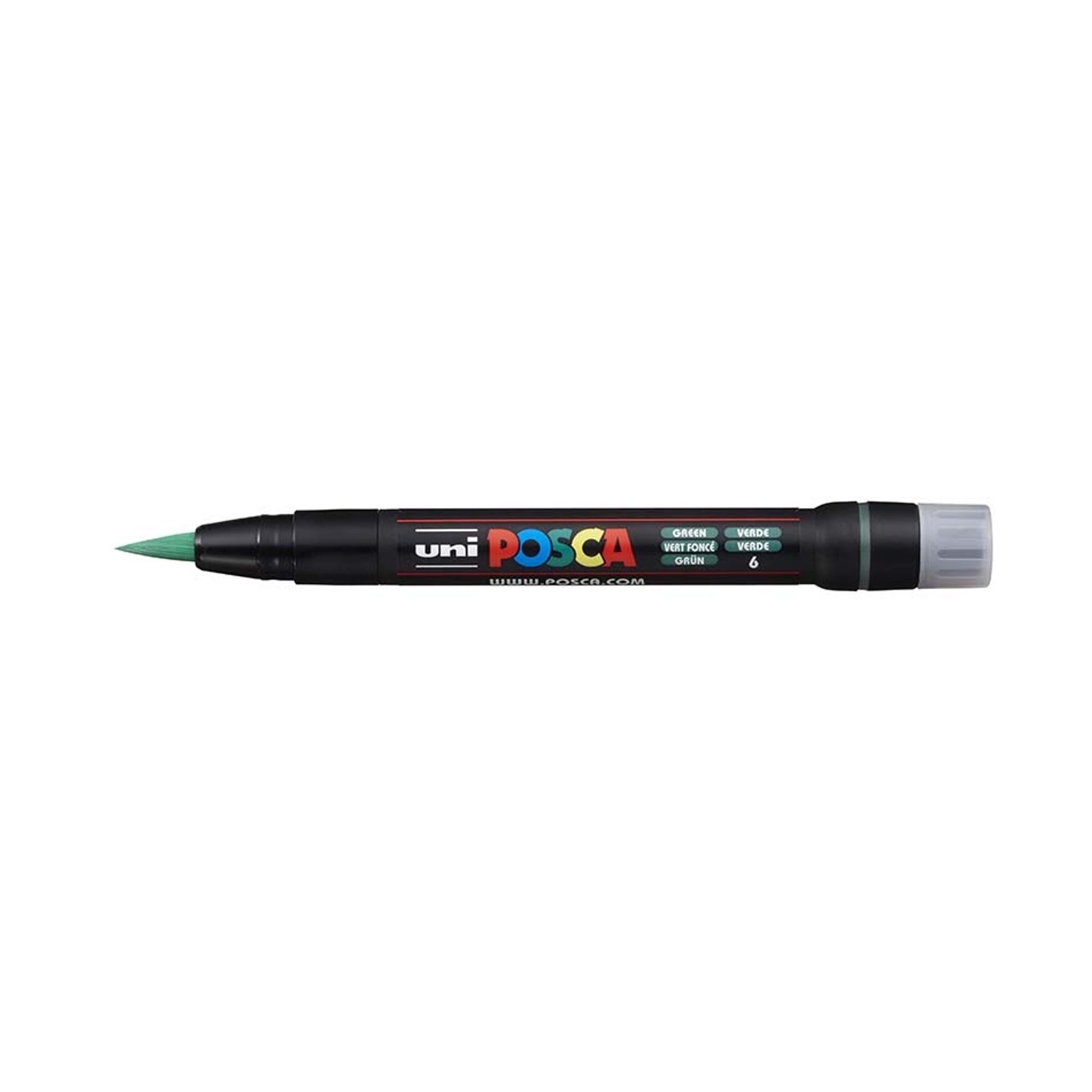 POSCA PCF-350 zelený akrylový popisovač se štětcovým hrotem je oblíbený mezi profesionály i mezi začátečníky. Díky vysoké sytosti barev a výborným krycím schopnostem je možno použít ho i na tmavé povrchy. Jednotlivé barvy se mohou vrstvit, mísit a ředit vodou. Vhodný na všechny běžné materiály, po zaschnutí je barva voděodolná. Šířka linky je až 8 mm.