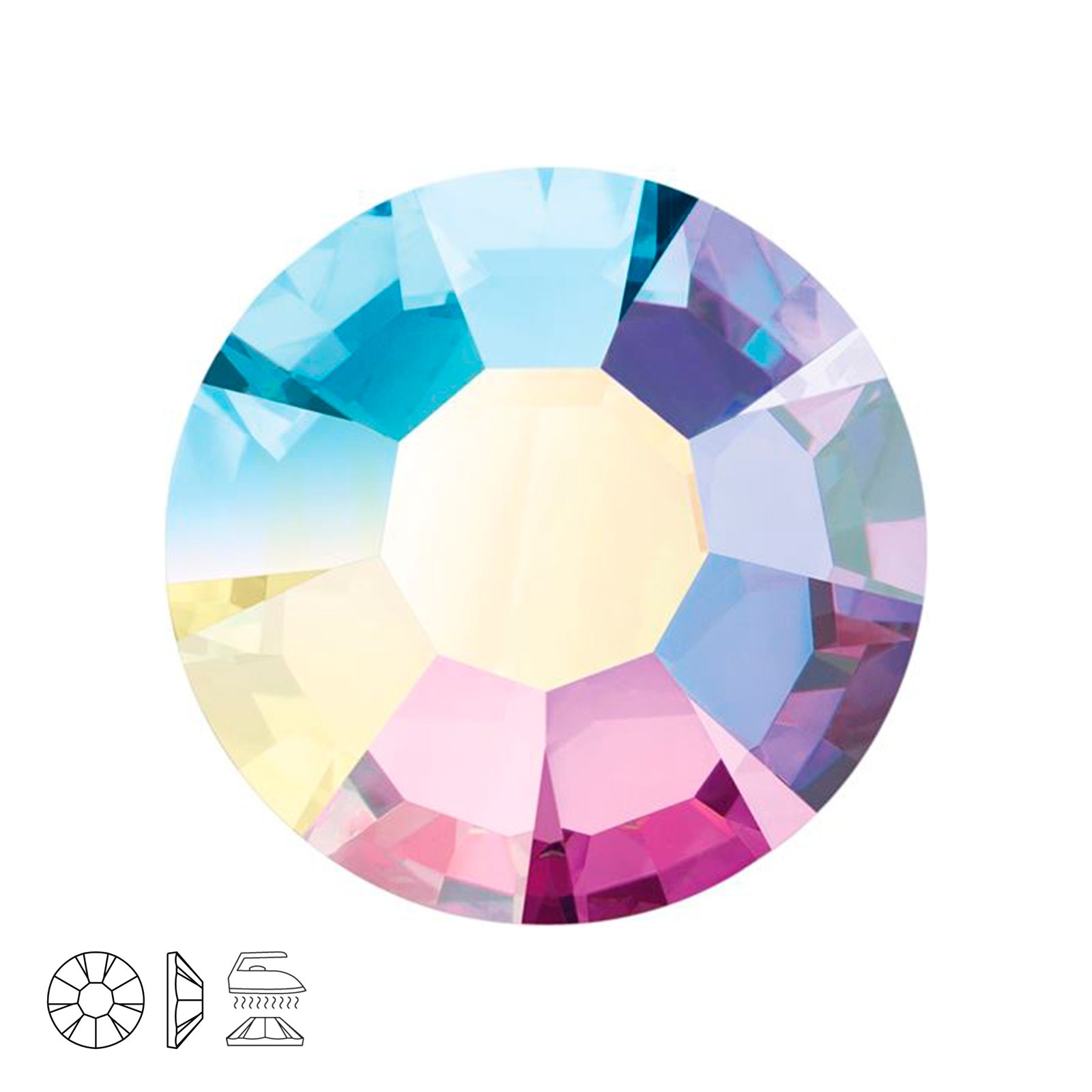 Preciosa MC iron-on chaton rose MAXIMA SS34 Crystal AB is an original wholly cut stone by PRECIOSA, finished with a special glue with a low melting point for easy application and perfect adhesion and it’s an alternative to the SWAROVSKI 2078 XIRIUS Rose stone.
