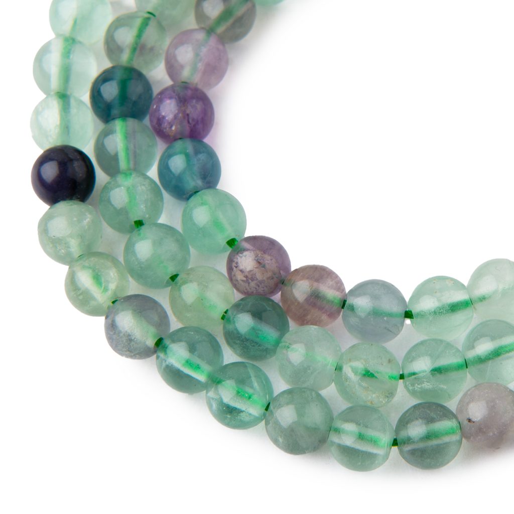 Duhový fluorit (rainbow fluorite) ve velikosti 8 mm údajně dodává svému nositeli klid a chrání ho. Má fialovou barvu s duhovými efekty, v nichž můžete spatřit zelenou, modrou, žlutou, růžovou a další odstíny. Tento drahokam podporuje koncentraci, učení a rozhodování. Říká se, že má skvělý vliv na intuici. Podle legend umožňuje čtení mezi řádky a rozumění skrytým významům. Chrání údajně také před elektromagnetickým zářením. Každý korálek je originál, a proto se může lišit o cca 0,5 mm. Více o duhovém fluoritu si přečtěte v našem článku o fluoritu.
