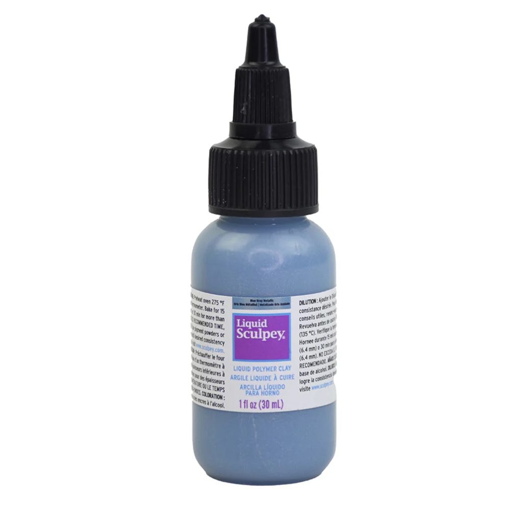 Tekutá polymerová hmota od Sculpey má metalickou modrošedou barvu a hodí se k vytváření šperků, domácích dekorací, spár pro mozaiky a mnoha dalšího. Je možné s ní také tvořit různé tvary a textury (za pomoci forem určených k pečení), použít je pro fixaci povrchových úprav polymeru (např. inkoustů a dalších barev), spojovat s ní části hmot a podobně. Do hmot lze také přimíchat inkousty, kovové plátky a glitry. Objem: 30 ml.