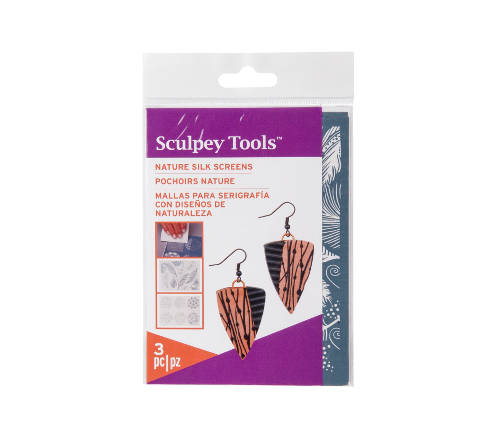 Sculpey set for screen printing interesting designs with the motifs of nature on products from polymer clay. We recommend using acrylic paints. The templates are reusable.