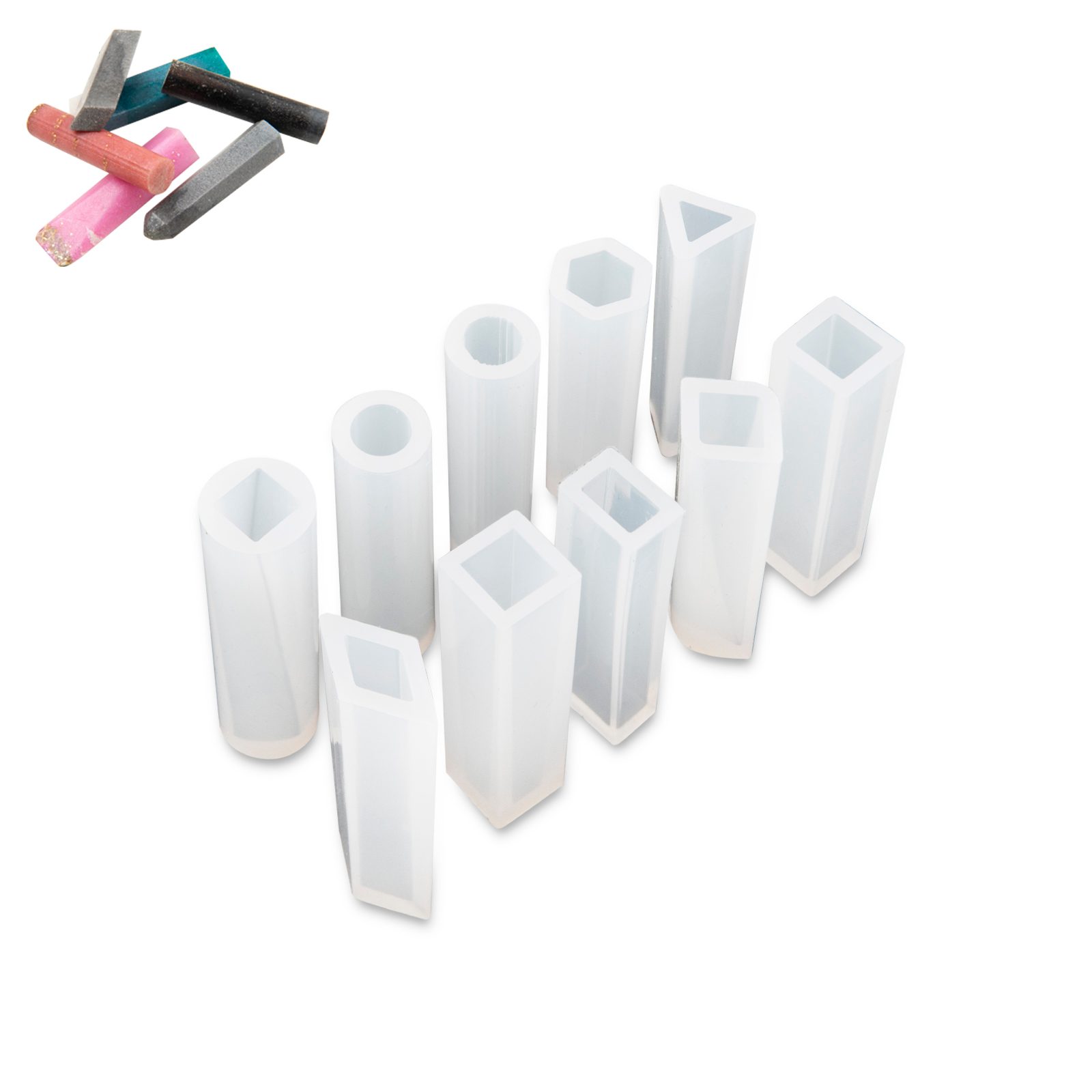 Set of 10 silicone moulds for crystal reisn casting mix of geometric oblong shapes can be used repeatedly for casting glass-imitating crystal resin. Casts from these moulds will serve as beautiful crystal jewellery pieces or as decorations. To prolong the service life of moulds, we recommend applying a separator to a mould before starting the casting process. Set contains various shapes and sizes of oblong rectangles, sticks and triangles.