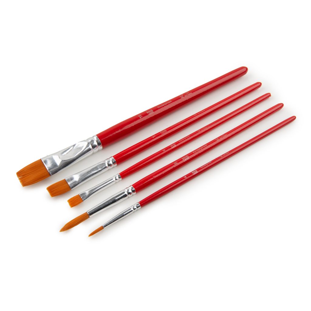 Set of kids paint brushes Mucki for schools and hobby 5pcs is suitable for almost all paints and painting techniques. They have coloured synthetic bristles that are very elastic and durable and keep their shape. It’s ideal for use in kindergartens, schools and in your free time. Package contains 5 brushes: 3 flat brushes with sizes of 6, 12 and 16 mm and 2 round brushes sizes 4 and 8 mm.