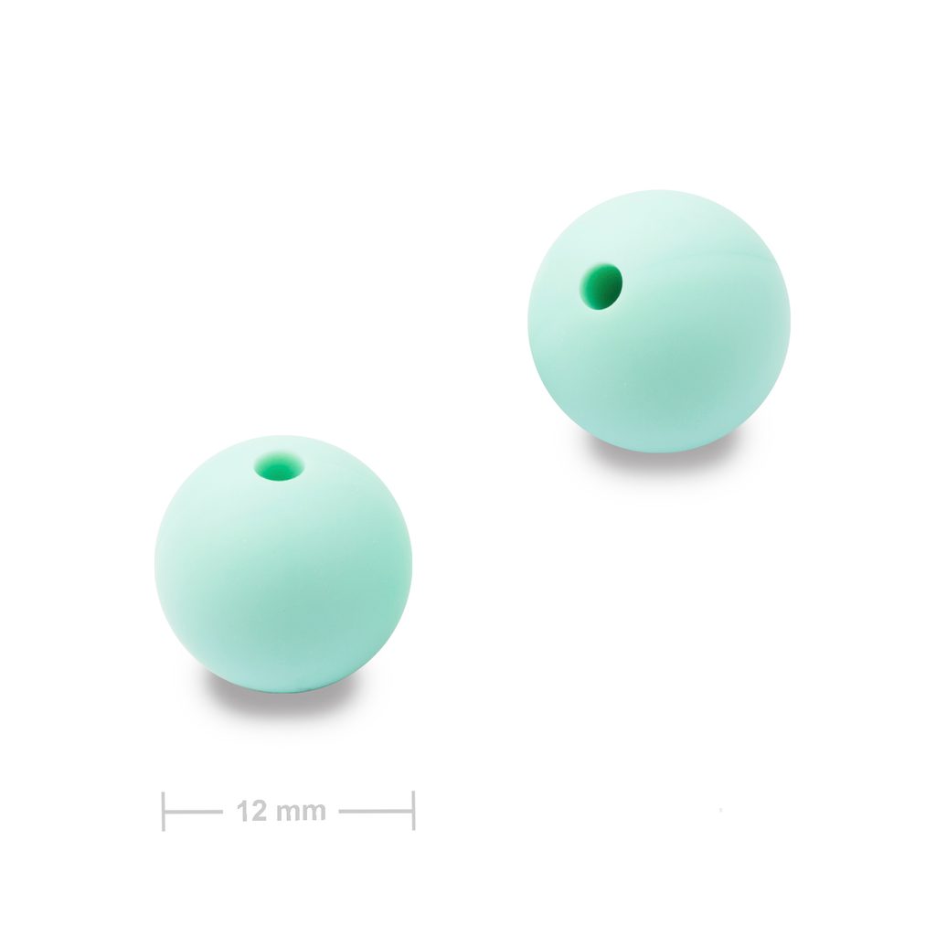 Silicone round beads 12mm Mint Green that are also called nursing, babywearing or teething beads are mainly used by mommies with small children. Their babies can bite into these silicone beads that are made from safe food grade silicone in order to stimulate their gums, while moms can enjoy wearing a stylish accessory. You can use them not only in bracelets and necklaces but also for making stroller or dummy chains.
