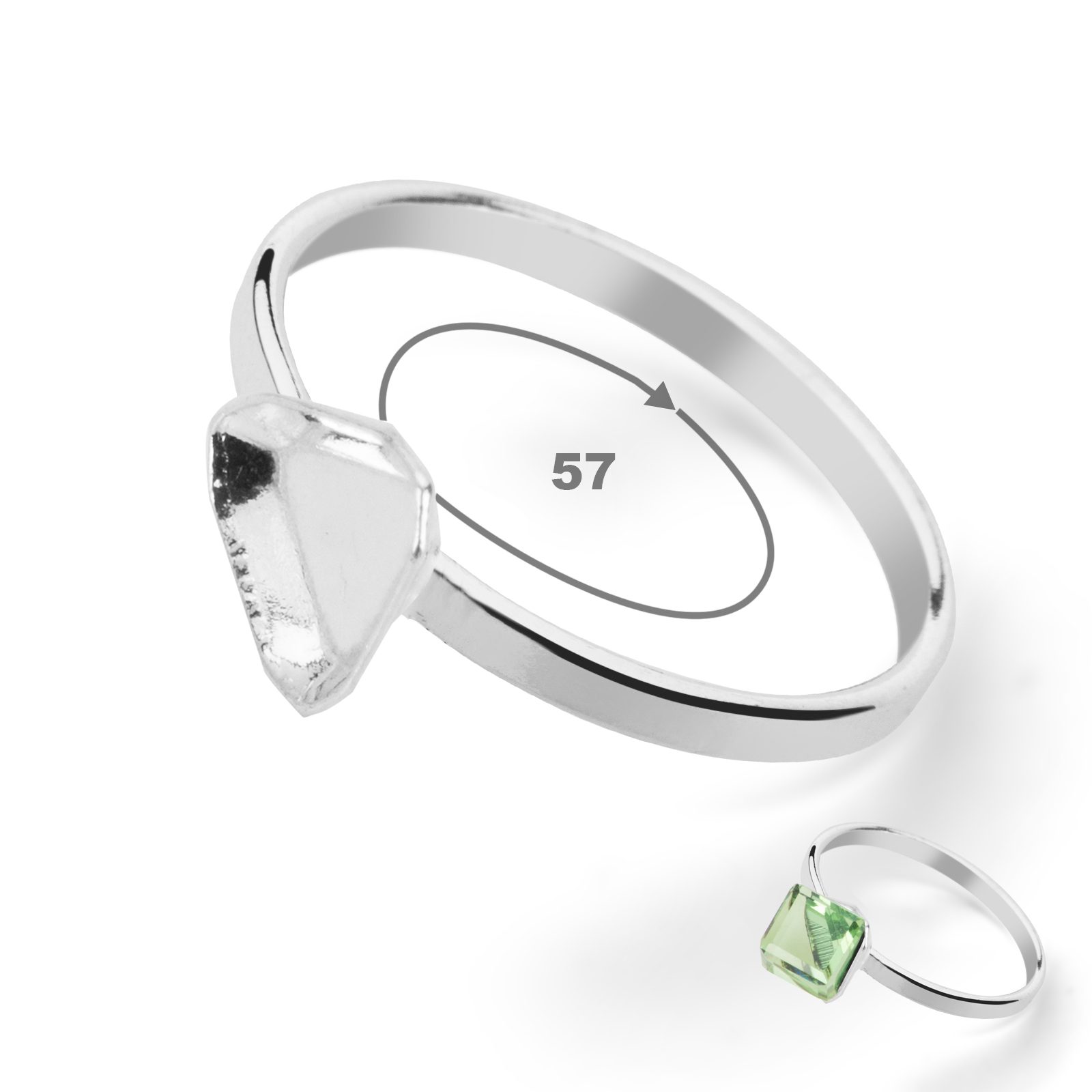 Sterling silver 925 ring base for SWAROVSKI 4841 4mm size 57 No.107 comprises of a pad that is suitable for gluing crystals Swarovski 4841 sized 4 mm.