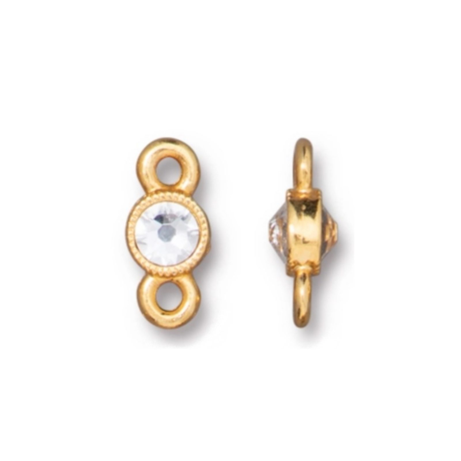 TierraCast Crystal Brilliance is a decorative connector in antique gold colour. A transparent crystal size SS16 is glued on this finding. You can connect it with other TierraCast findings to make beautiful and unique jewellery. It doesn’t contain nickel, lead or cadmium.