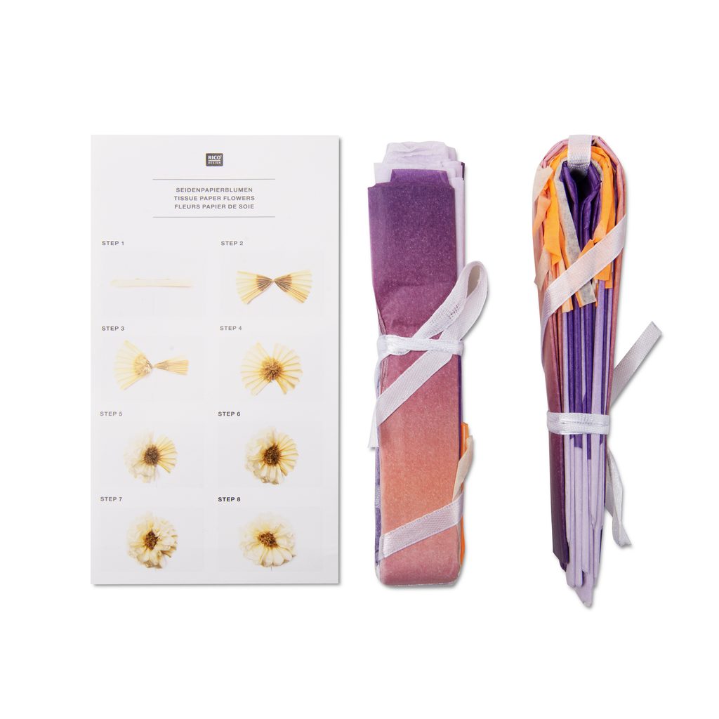 The tissue paper pansy making kit allows you to create 2 flowers with a diameter of 25 cm. The original paper flowers can not only be a beautiful spring decoration, but can also serve, for example, as a spectacular decoration for gift wrapping. The set includes tissue paper and clear instructions with pictures for easy production. Create unique spring decorations and brighten up your home with these stylish flowers.