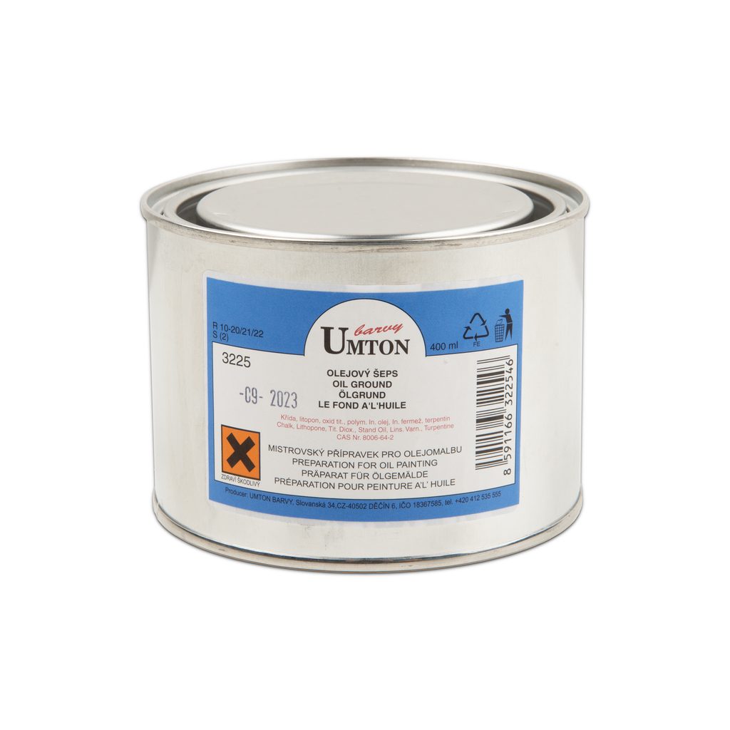 UMTON oil ground 400 ml is a white-coloured substance that’s used as a surface primer for future oil paintings. The aim is to level surface irregularities, create a painting’s optical base and have a mid-layer between the paint and the base. Thanks to that, it also significantly reduces paint consumption and increases the durability of the work of art. This oil ground consists of chalk, powder white, polymerized linseed oil, varnish and turpentine. Before applying the paint, the oil ground-covered area needs to be perfectly dried.