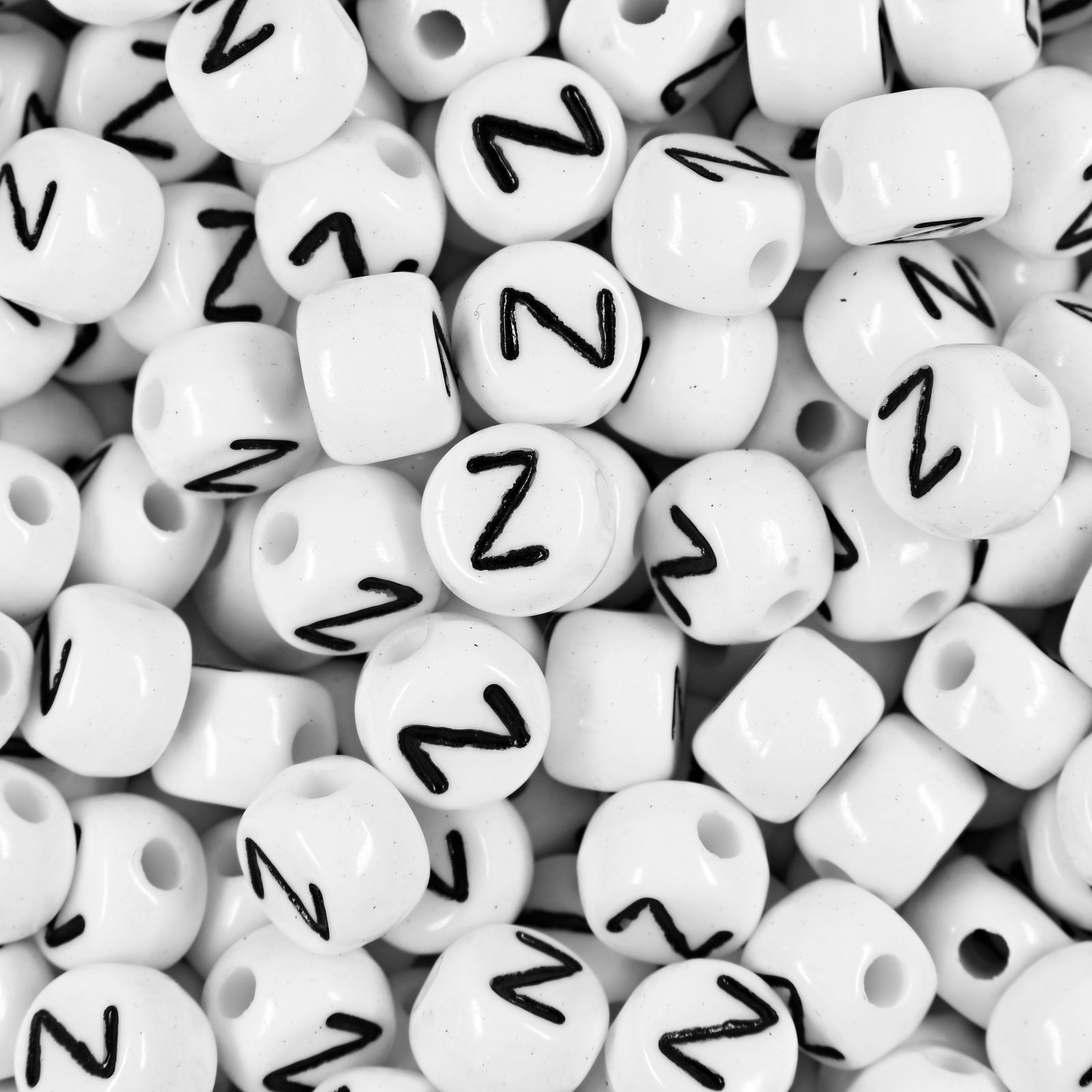 White plastic bead 7x5 mm with letter Z is very light and thanks to its wider center hole, you can pass the threading material through multiple times. The bead is suitable for making friendship bracelets or necklaces with any name, wording or slogan you want.